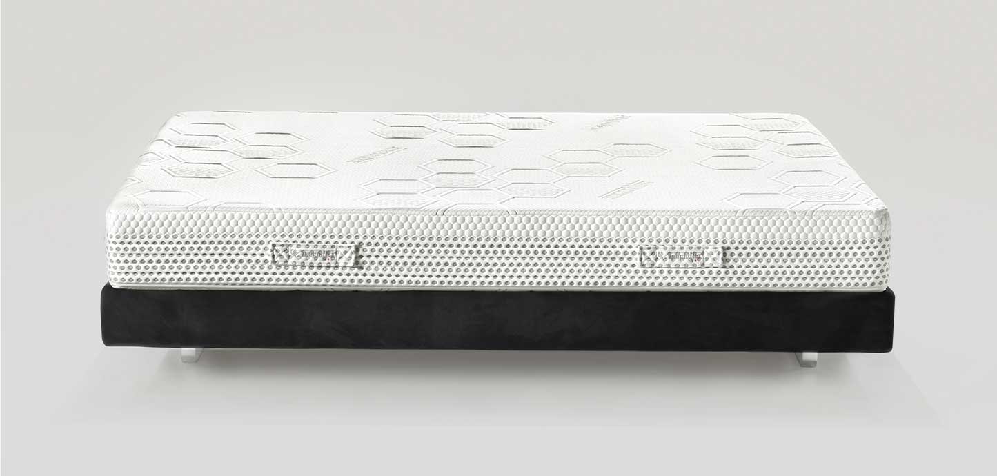 Infatti, il Memoform avvolgente ed anatomico si adatta perfettamente alla silhouette del corpo evitando punti di pressione e favorendo la circolazione sanguigna. La lastra in Eliosoft garantisce il sostegno ideale. Il rivestimento è in morbida viscosa. Comfort Medium-Soft.