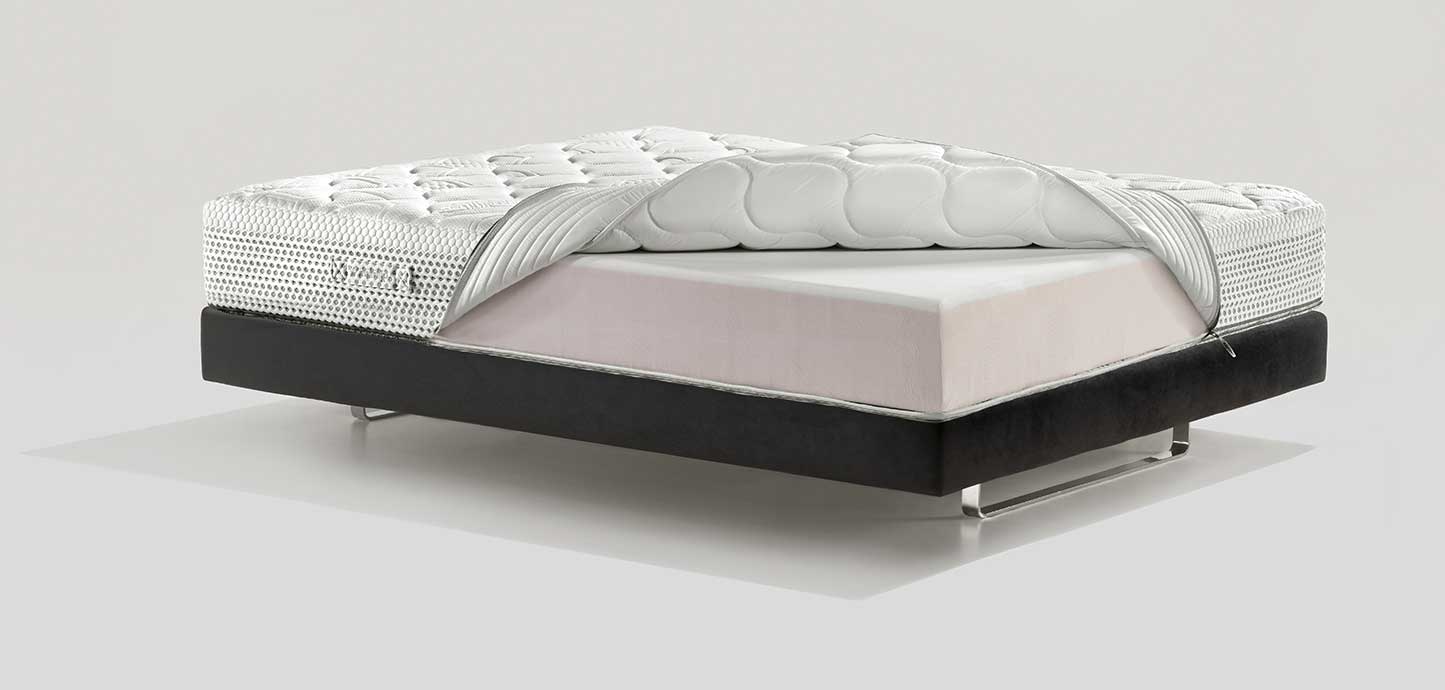 La lastra in Memoform alta 2 cm reagisce al peso del corpo per adattarsi perfettamente a ogni silhouette, offrendo un comfort avvolgente e un supporto anatomico a tutto il corpo.